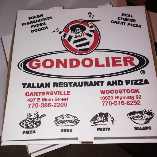 The pizza here is phenomenal. Plus, its buy one / get one - regardless of the size, and regardless of the day of the week. The Gondolier is my personal favorite. Ive also had their fettuccine alfredo and chicken parmesan - both of which were very good. This is a sit-down restaurant, so know going in that youre not going to get your food in 5 minutes. Ive never had to wait an extremely long time, plus the waitresses are always pleasant.