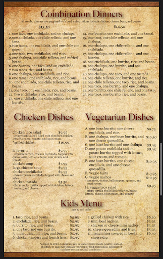 If you enjoy sub par Tex-Mex with a good chance of contracting food poisoning then look no further. Ive given this establishment ample opportunity to redeem itself and in such instances have had; under cooked food, dirty dining wears, orders for take out brought as dine in, over priced and watered down drinks, incompetent wait staff, and insufficient parking spaces with a good chance of being towed if parking at adjacent businesses. I know what youre thinking. "Why would you continue to eat there?" I stopped giving them my business once their bartender left. He was the best employee they had, and he obviously became fed up with the operation theyre running. If you enjoy bowling alley grade food at steakhouse prices then this restaurant will be the perfect marriage. Salud!