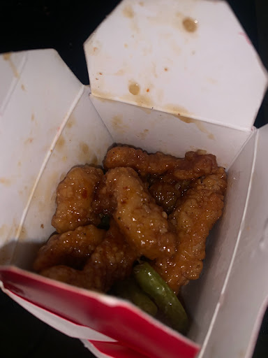 Food was standard for a Panda Express though not as fresh as Ive seen at other locations. Service was very very slow and a little rude. The outdoor seating was nearly all broken or cracked.