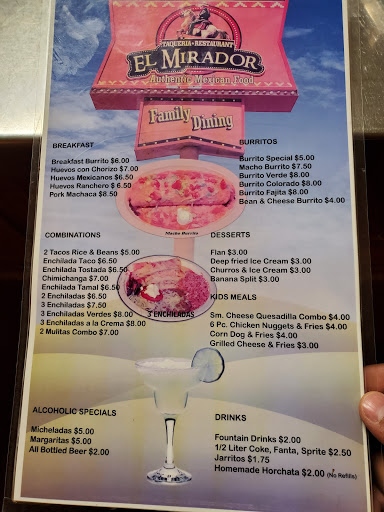 The food is great! Some fantastic tacos and other Mexican dishes. The huge downside to El Mirador in my opinion is the wait time can be ridiculously long. This isnt way uncommon for the Mini-Cassia area but its something that needs to be noted if you are considering eating there. Great food but not a place Id recommend if you are ever in a hurry.