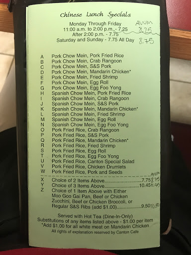 I must say, that Canton Cafe has the best Chinese food in the Caldwell area. They have some very friendly waitresses. always smiling and cheerful. the only thing negative i would have to say is each time i go, its always so cold. but overall i will give them 5 stars.