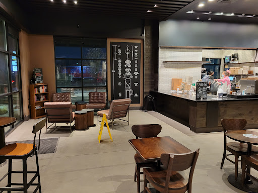Great parking. Drive thru doesnt block parked cars often. Wide open cafe. Great new store. Sound Is not a big issue like most of the Starbucks Stores. Super clean restrooms.