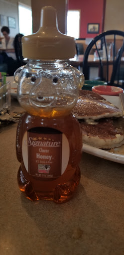 We went there for the 1st time this morning and our server, Amy, was AWESOME! The timing was perfect. No waiting around for coffee or food and she was patient with us when we were trying to decide what to eat. There were so many delicious sounding items on the menu and I couldnt wait to try any of them. I had the Sausage Lovers Special which was great! It came with a Sausage Scramble, 2 links of sausage and a sausage patty. Included was our choice of bread (I had the pancakes) and it also came with a nice serving of hash browns covered with a sausage gravy. Mmmmmm My girlfriend had the California Scramble. She loved it and it was alot of food, so she took half of it home. She loves coffee annd she mentioned that the coffee their was really good and it was a healthy first serving in their big blue coffee cups smile emoticon All in all, very enjoyable. We will definitely be going again to try other items on the menu smile emoticon Thanks for your great service, Amy!