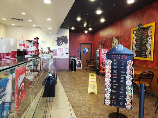 God, I love ice cream more than anything but this place is filthy . The tables are never wiped down, there are fingerprints on every single piece of glass, the rugs at the front door look like theyve never been changed out, the tiles look like they have years of dirt stuck in them and theres even a mess behind the counter. This location needs to work on cleaning the place up a bit. I would give five stars if this store spent a bit of time cleaning just a little bit. I shouldnt have to put napkins down on the table so I dont get stuck to it.