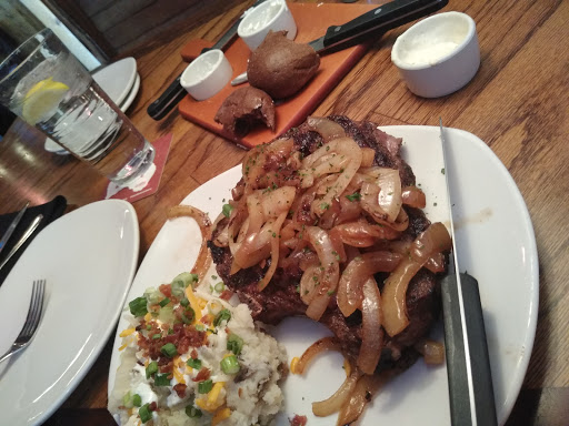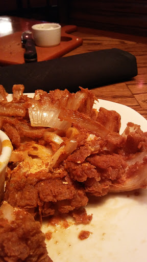 It was date night for us two, and our first choice for dining out was extremely busy, so we decided to try the Outback Steakhouse in Nampa. Our server Janelle was absolutely amazing, but the food was just awful! First , our appitizer was their fried mushrooms which were dehydrated a bit and extremely chewy (like eating fried leather). My salad was the wedge salad, I am pretty much sure that it wasnt washed because I had bitten into a few pieces of sand. Also, it was hard to see the actual lettuce since it had been drowned in tons of blue cheese dressing. Our Entrees, my other half had the filet mignon and lobster tale combo, I had the NY Strip blue-rare. Well, the lobster was over cooked, and our steaks both had an unbelievable amount of seasoning on it, like the shaker lid fell off above our steaks. I must say that the steaks were cooked to perfection temperature wise, but with all of that seasoning salt we couldnt taste our steaks. The only thing that the Outback Steakhouse in Nampa has going for it is that it wasnt that busy and the incredible service of our server Janelle. I dont think that we will be back.