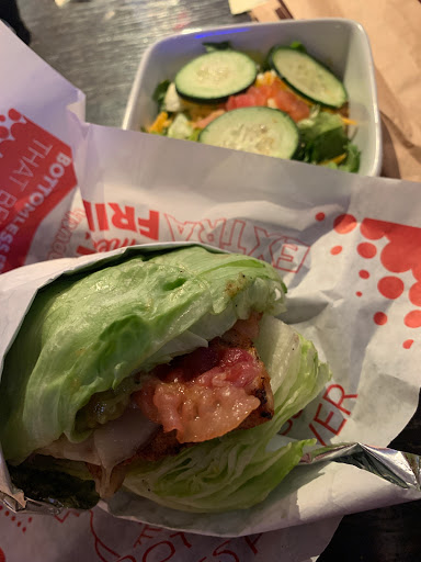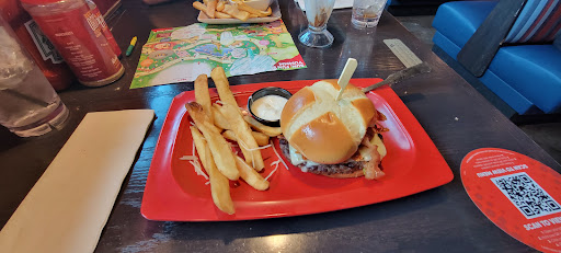 Always a variety of burgers to choose from, and you cant beat bottomless steak fries with campfire sauce. The service was not spectacular, but we went in on a busy Friday night. The wait to get a table was about 30 minutes. The floor underneath our table was very sticky. When they first escorted us to the table, we got there and it had not been wiped off.... So they really fast did it while we were standing there. There were employees whom i think were off work, but were standing round the cash register during our entire meal. Wasnt the most professional experience.