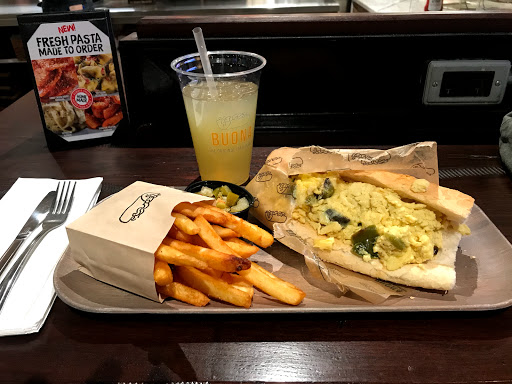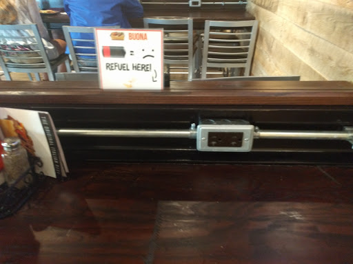 Buona is a brand new restaurant so it is very clean. The food is good, and the staff is friendly.