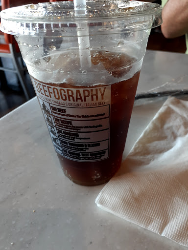Pretty good food at premium fast food prices. You choose how much of the bun is softened in au jus. Dipped is both ends, thats what I like. With mozzarella and peppers. They have a lot of other stuff besides Italian beef too. Seems like good competition for portillos.