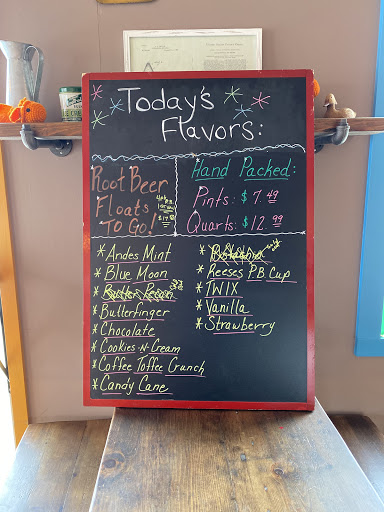 Cozy, rustic, atmosphere. Very clean. Delicious homemade ice cream. Unique offerings, like the "Riverbottom Coffee Float". Kids 4 and under get a free 5 oz cup of ice cream. Just off the Prairie Path bicycle trail.