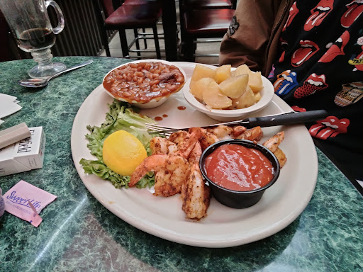 The food is great! Id recommend the pulled pork sandwich, baked beans, garlic potatoes, everything really. Good home-made style food. Great atmosphere, much quieter than fast eddies, you can actually hold a conversation. My girlfriend and I got two meals and dessert for $19.30.