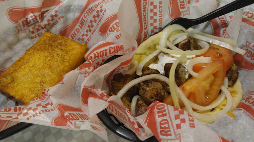 I Ordered gyro dinner, it came with one pita cut in 1/4 it had 2 wedge of tomato and 5 strips of onion. The meat was a lot, but no pita onion tomato. Food was cold. . had a chi dog it was cold nothing special.