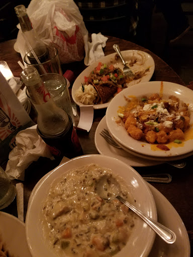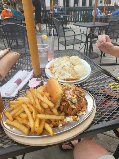 We are visiting from New Mexico (one of the 50 states). After reading a few good reviews, we decided to pop in for burgers and drinks. Upon entering the establishment, we stood there for a couple of minutes. The bar tender and wait staff stood at the other end of the bar, talking. They could clearly see us, as it wasnt very busy and there were only a few patrons sitting there. I finally had to get the bar tenders attention by waving him over. We wanted to sit by the windows, so we could enjoy the river, while we lunched. We were abruptly told the section was closed for a private party, although said party were dining out on the patio! We seated ourselves at another window, facing the street. We sat there for a good 5 minutes (I was timing them) and finally was approached by a waitress. She wasnt too friendly, provided extremely slow service and came back to check on us only twice! The food wasnt to great either! We went out if our way to eat here, but went away very disappointed. If Gillersons Grubbery was open, we would have gone there instead.