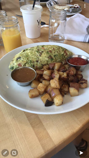 Its a pretty okay standard breakfast spot. What throws me off though is that the food quality is fairly mediocre. In particular, its disappointing that for being a place which calls itself a pancake house, is the fact that their pancakes are the frozen microwave kind and pretty underwhelming. Additionally their hash browns are served soggy with no crispy bits, remenescent of cafeteria style cheap breakfast food. Youre better off hitting up Papa Bear down the road for a solid diner style breakfast and real pancakes.