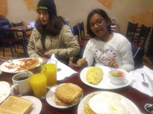 The restaurant has an old home-y feel, its cozy, which explains why our server was amazingly nice. She was attentive and sweet. The food was also great, you definitely get what you paid for. I got pancakes and they were so large that they took up the entire plate. So if youre looking for great pancakes and friendly service this is the place to go.