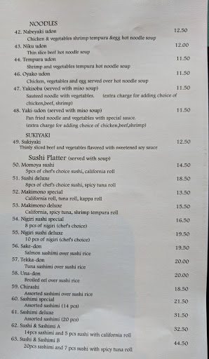Great for real authentic japanese food. Very responsible prices. Food is always great along with the service. Best modern japanese restaurant in the area. The teriyaki beef is fantastic and the sushi chefs are very skilled, delicious sushi and sashimi. This place is not very large but great use of space does not feel over croweded with a full house and has very pleasant decor. They also play either japanese or classic music not American pop, which is great for any establishment representing their own culture. Just doesnt seem right when going to a burger spot and traditional Chinese music is playing.