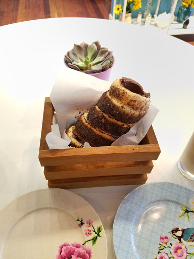 Unique "donut" shop. These Hungarian inspired spiral baked concoctions are a new to me take on a sweet treat. They are a bit expensive, in my opinion, but worth a try. Service was personal, although this is not fast food, so expect a 5-10 min wait after you order before seeing your treat. They can be customized on the outside and inside with different sugary add-ons.