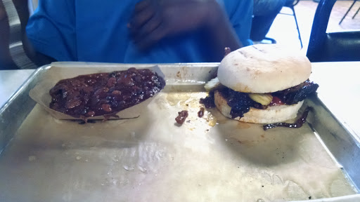 This is one of the top bbq places I have been in the city. Sits there with Vernons and Pappys. The only downside I could say is that it is so far from me. The sauces are perfectly sweet, spicy, and the perfect consistency to liberally coat your meat of choice. I had their pulled pork and it was perfectly what I wanted. Smoked and tender. The pork steak my brother had was a new experience for me. I only got to try a bite but that bite assured that it would be what I got the next time I was there. I have been leery of pork steaks because they tend to be kind of greasy and unappetizing to look at. What I was able to see, as my brother wolfed his steak down, was that it was caramelized on the outside and tender on the inside with none of the cartiledgy fat I have come to expect from a pork steak. It was also huge. Took up half his tray. My mom and fiance both got sandwiches and it looked like they straddled the line of stuffed and consumable perfectly. They were able to eat the sandwich without having everything fall out but also have huge hunks of bacon hanging from them. To top it all off, they even have excel soda. Best local soda here. Forget Fitzs. They need to get a dessert, which it sounds like they sometimes have, as they mentioned apple pie. would have rounded off a perfect lunch. I want to see if its as good as Vernons smoked fruit cakes, puddings, and pies.