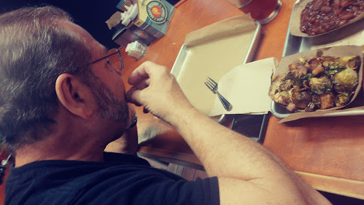 Decent food. Ribs, brisket, pulled pork, and kielbasa were ok. Nothing to write home about. Not a fan of the cole slaw but then again, not a fan of cole slaw. Kale was ok with a hint of garlic. Brussel sprouts were amazing. I wouldnt think I liked brussel sprouts (and I probably dont) but these are fried in pork and salt and are not your typical brussel sprouts. Fountain drinks were decent. Theyre off brand but they have substitutes for colas, lemon-lime, and grapefruit pops. They were all modestly carbonated or better but most tasted a little off. I think Im just used to Coke and Pepsi products. And, of course, they have tea, both sweet and unsweet. Friendly atmosphere and overall a decent place to grab a bite. Almost forgot, if you pay with credit card, theres no way to tip after the fact since you pay up front. Kinda weird to tip on service that you havent received (except from the person taking your order).
