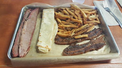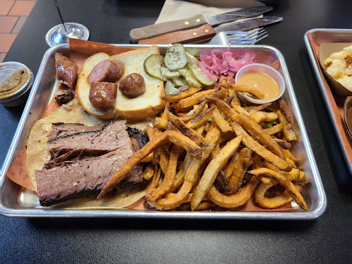 Hands down, this is the best restaurant on the planet! Everything about the place was perfect in my humble opinion. The best plate to order was recommended to us by the staff assisting us while in the line to order. Its the 2 meat combo w/ a half order of pork steak & half order of brisket burnt ends. We also ordered the turkey & chicken. My wife liked the turkey the better than the chicken. The quality of each meat was perfect & stands alone in its category. For sides, we had the Brussel sprouts, baked beans, candied bacon, cole slaw, and seared potato salad. Ive been to some of the best BBQ joints in Florida, Texas, Southern California, Missouri, Illinois, South Carolina, etc...honestly, this restaurant smokes the competition. No biased opinion here, just super passionate about good food like all of the employees here were too. Beer selection & soda selection was excellent as well.