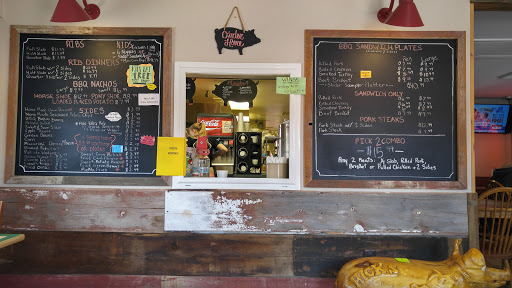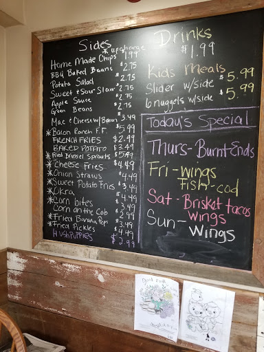 Fantastic BBQ, white cheese mac and cheese with bacon. Friendly people.