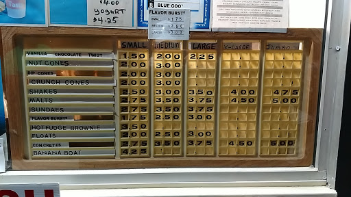 Quick and friendly staff; amusing ice cream, large variety, and super low cost. 3 of us cost $7.00. We will go back for sure!