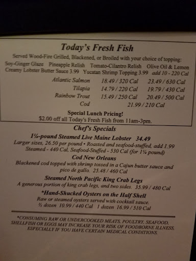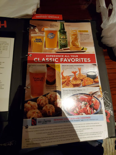 I had not been to a Red Lobster in 10 years. My husband loves Seafood so we decided to go here. I had some Lobster Bisque and I believe it was Cajun style Cod or something like that. It was delicious! Husband had Tilapia and mashed potatoes. There is free Wi-Fi and we brought our kids IPads so they can sit still for more than 2 seconds. Great place!