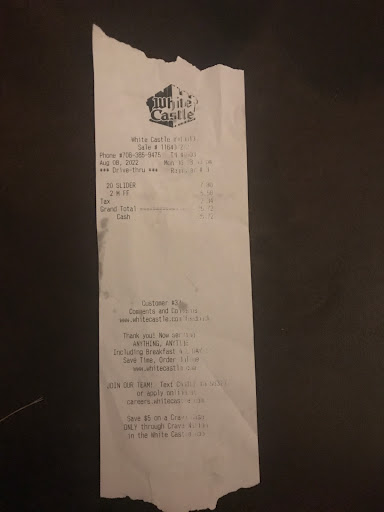 Hands down the best food and service of any White Castle Ive ever been to! Keep up the great work!