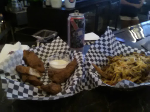 Large, understaffed sports bar full of dead enders. Scary.