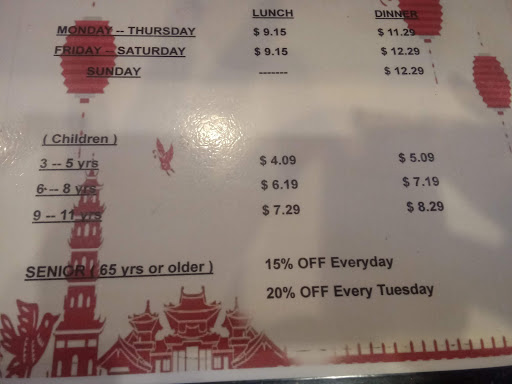 Staff is not friendly..they walk in front you..no manners..General tso chicken is rock hard string beans were cold...get your own drinks..advertise crab legs is nothing but dungess crab...hot peel shrimp for dinner only....just a mediocre meal..dont get excited to eat here.