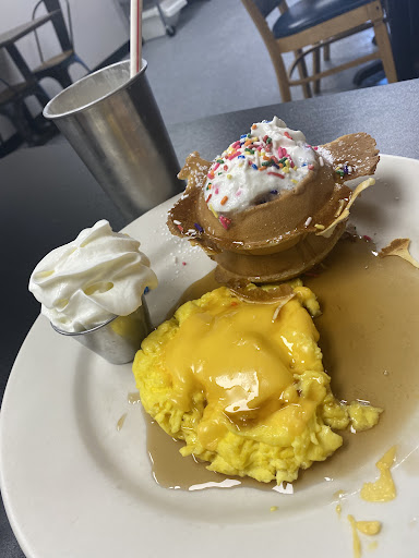 Easy breakfast , stands on par with Marys Morning Mixup honestly just not pretty and no pastries. Potato pancakes are flame (and completely deep fried) and they have mini waffles even though I cannot find them on the menu. Ive only done breakfast, would be weary of lunch ( standard club sandwiches). Heres it though, it a run of the mill family style restaurant, but they food is made well(and seasoned) and they service and prices are good. Its not gorgeous, its not trendy, but its tasty and you can wear sweatpants.
