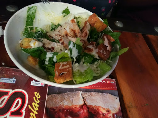 Pros: 1. Wide variety of very quality foods from Italian, to American, to Mexican and more. 2. Rustic atmosphere with old wood, brick and leather seats. The food was even served on some old-timey printed newspaper wraps and we were given steak knives for our decently sized burgers. 3. Rock music including Zeppelin played the entire time we were there. 4. Waitress was very friendly and provided great service. Improvements: 1. Needs a better beer selection, there are a lot of tried and true beers on their list, would like to see some creativity in trying new beers. 2. It took a little while for ourselves and other patrons we noticed to be seated despite not being overly busy. We had a good time, the burgers were a little expensive but excellent. We will certainly be going back to try the chicken parm and a few pizzas as well as some more burgers.