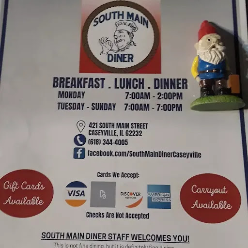 Dine-in or Carry-out, weve been coming to South Main Diner for a couple years. Our favorite special is the Walleye combo. They change up their specials and soups so we always ask. We enjoy spending time here and talking with William and his employees.