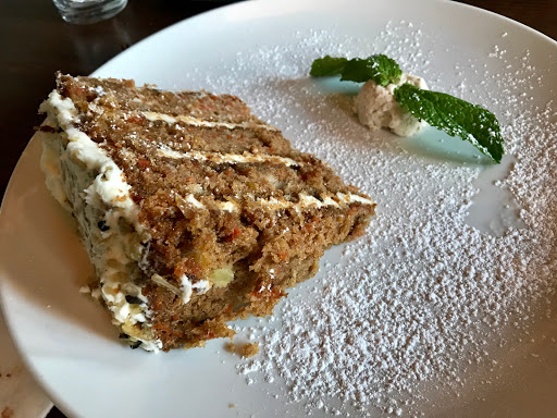 This is one of my favorite downtown restaurants. I live upstairs in the same building, and I dont cook, so I eat a lot of meals there. The menu is broad enough I dont get tired of any one thing, although at the moment Im kinda fixated on the stuffed poblano peppers. Absolute heaven. Great food. Good service. This would be 5 stars if the kitchen werent S-O S-L-O-W when theyre even a little busy. If I still had a business, Id try to hire away whoever trains their staff. Brilliant! ....Oh, an dont forget the pound of chocolate cake.