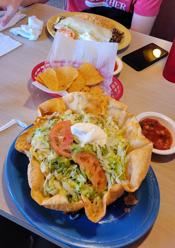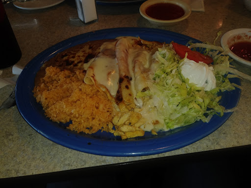 I dont understand how this place received such high reviews. The "salsa" was basically chunky canned tomatoes, and the food was average at best. I had the Chili Rellenos D.F., which was supposed to be stuffed with cheese and beef. It was cheese rellenos with ground beef on top, and the flavor was meh. The place seemed dirty to me, the chairs booths are worn, and the bathrooms were not pleasant. Its very loud due to the acoustics, and wasnt very comfortable. The service was quick, almost too quick. I felt rushed to order, and the food came out so quickly that I had to wonder if they might be a bit psychic. Thats a plus if youre on the road like we were, but still... On the positive side, the portions are huge, and the staff was pretty friendly and attentive, and we really enjoyed their tomatillo sauce. Hubby liked his meal better than I did (and I tried his too), but if we lived near there, we would never return.