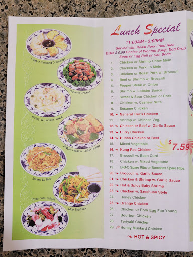 Ive been coming here for years and they always have amazing food and service. The owners are very friendly. The lunch specials are an incredible deal. Lots of food at a low price. Generals chicken or egg foo young.