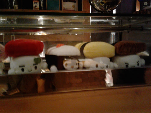 Solid service, oddly unnerving decor, delicious food. Just pretend youre out with your supervillain friend. Admittedly I still have a thing or two to learn about sushi, but Ive never seen nigiri this big and gorgeous before. Theyre almost too big to eat in one bite! To be honest Id prefer they were smaller and cheaper so I could try more, but they certainly do impress. I was hoping for a marinated salmon in my spicy salmon roll and it turned out to just be a "normal" salmon roll with Sriracha drizzled on it, but it and the hamachi roll were delicious so I wasnt exactly disappointed. The copper tumblers are cool... literally, once theyre filled. Mine conducted ambient heat into my beer most efficiently. Stylish as they are theres a reason glass is the standard. Certainly will have to visit again.