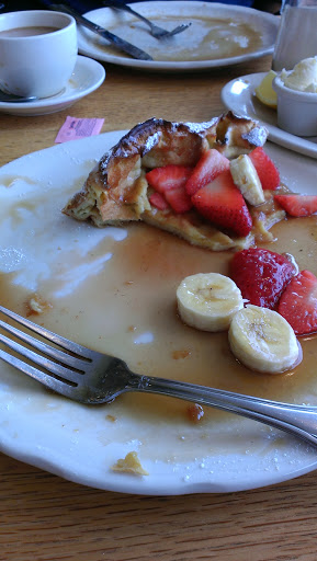 The food was good, but they ripped me off. 3 pancakes came with one of the omelette meals(that was already $10) and I just asked them to add strawberries on top of the pancakes. I was fine with the extra change but they charged $3.75 extra!!! Really?? The waitress did not even explain that it would be an almost $4 extra charge. It did not say that on the menu either. They just put like 3 strawberries on top. Ridiculous. Then I asked them why the charge was so high. They said "because theyre fresh strawberries". Yeah but fresh strawberries are in season now!! I can get a whole container of strawberries for that much this time of year... Give me a break! The food was good but Im sorry that charge was way too high. If you are going to charge that much to put an in season fruit on someones pancakes at least let the customer know when they ask for them?? I was ok with an extra charge and was expecting it. But they took advantage by charging me way too much for something that would not cost a restaurant that much to purchase this time of year... That made me mad. I will go elsewhere in town for breakfast next time.