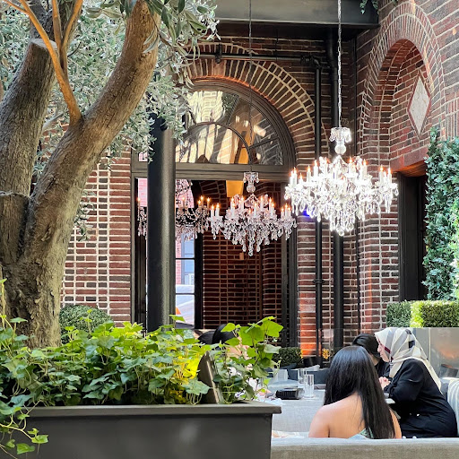 The courtyard was nice but the no reservations policy meant a 45 mins to an hour wait, not bad given that you can sit on the furniture in restoration hardware. They have a small cafe that you can get coffee and pastries while you wait as well. The seating options themselves were a bit odd: either sit really low on couches and eat off of the coffee table, or be seated at a real table and eat at regular table level BUT with the distance between you and the person across from you being really wide. The food was good but the interior atmosphere is probably its biggest draw... If it were not for the courtyard, the food wouldnt draw me back