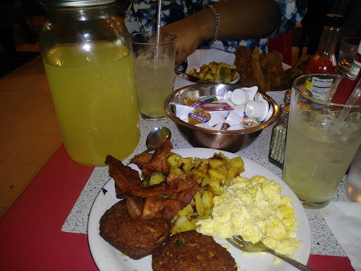 LOVE! LOVE! LOVE this place. I reside in Philadelphia, and SO wish I had a 5 Loaves Eatery near me often. OK grant it, I may be the sister and in-law of the owners, but that by no means should suggest that I wont keep it real here. Like my family I too am a "Foodie" and well traveled. The service is known to be slow by 10- 15 minutes, but my take on that is the food is made to order "FRESH"! No can or pop top action here. When in town my son LOVES the Shrimp Poor Boy Sandwich, and 5 Loaves Wings (to die for: WATCH-OUT Harolds next door). I LOVE the French Toast, Salads (with their house made dressings), and the Cat Fish Nuggets. Before giving up the "Gospel Bird" I would hurt someone for the Smother Chicken 5 Loaves offers. Again the service may be slow. but as the adage suggest... "Good things come to those who wait". Enjoy!