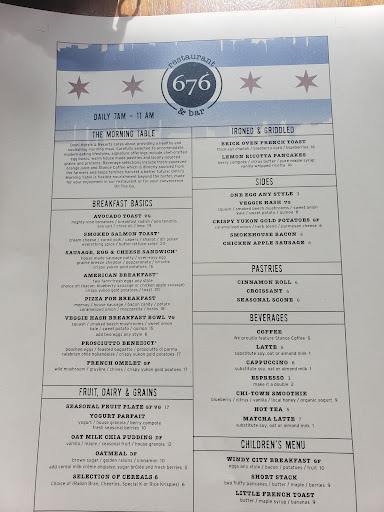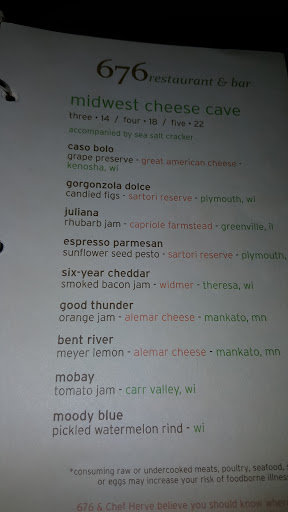 A welcoming open setting of the bar and restaurant looking out over Michigan Avenue. There is an nice section with comfortable seats in one section of the bar kind of closed off making it more of a lounge. The area sourced food is a hallmark of 676 and much appreciated. Was surprised to find such well prepared salmon. Cheese selections are excellent. The flatbreads are well sized and tasty. Enjoyed the simply made housemade Italian sausage flatbread a great deal. The Charcuterie was excellent for small bites. Well worth the visit.