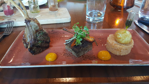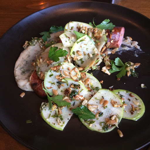 I travel for business and have eaten at lots of great restaurants but few have impressd me as much as the 676. The menu itself is so creative it is a joy to read. The food is highly original and if the goal of the chef was to create an experience instead of cook us a meal, he nailed it! The creativity of the dishes were great with careful attention paid to the flavor and texture of each item. The presentation was excellent. I had the Chicago strip steak that was drizzled with a delicious brown sauce. The side was smoked onion barley which complemented the beef so well it was hard to believe. I highly recommend this place!