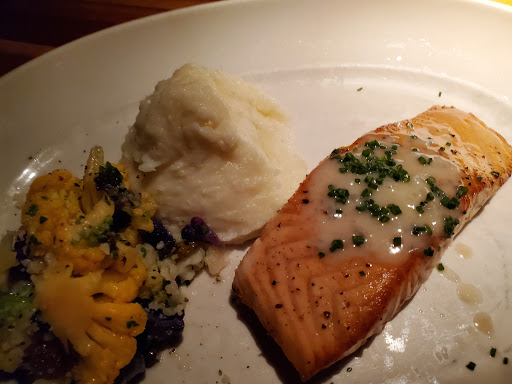 I love the atmosphere of this place, which is intimate and fairly dark, with spotlights aimed at the tables rather than the diners. The live jazz is just the right volume, giving the place a supper club feel. The menu is similar to Hillstone’s and Houston’s, which isn’t surprising since it’s affiliated. A couple of our favorite starters from there appear here. The spinach artichoke dip is creamy, and served with sturdy tortilla chips perfect for dipping. Also included are sour cream and a salsa with just a hint of heat. House smoked salmon is very smokey, delicate and flaky, served with crisp toast and a mayo and dill based spread. Bandera’s Caesar salad isn’t for purists, as it uses kale, and the croutons are made from a fairly sweet corn bread. Ours were heavily over-dressed, but when the waitress noticed we weren’t enjoying them she immediately had them remade with about one fifth the dressing, and they were much better. A house specialty is the enchilada, which is available with steak or a la carte. It’s a bit unusual in that it’s stuffed with squash, but is quite creamy, cheesy and satisfying. Much of the menu is given over to burgers and other sandwiches, so the price for dinner and a show can be quite reasonable. Service was super attentive without being intrusive. Waits can be long, so reserve ahead, despite the fact that their reservation system doesn’t work as well as opentable. This is definitely a great place for live jazz in a supper club atmosphere.