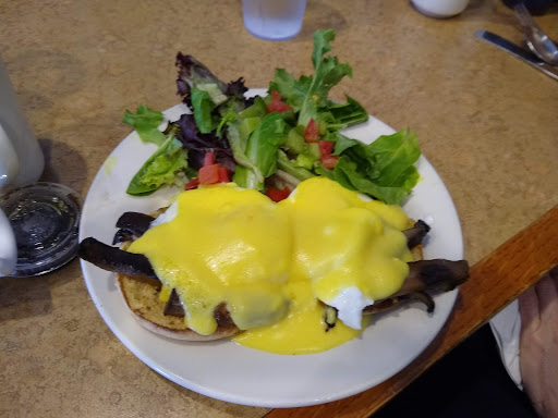 Service was rather lousy, with a waitress who didnt refill waters at all even though mine was empty halfway through visit. My $11 eggs benedict breakfast did not leave me full, and the side of hashbrowns were overcooked potato chunks without seasoning, not hashbrowns and not tasty. The two stars is simply because the eggs benedict was quite good. Nothing life-changing, but a better than average breakfast entree.