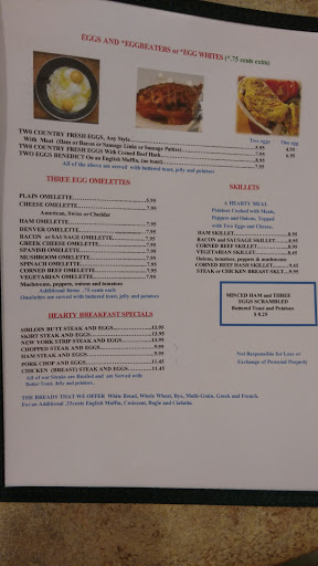I eat at a lot of diners. This one is pretty typical with typically weak coffee and the usual food quality (canned mushrooms, etc.). Two negative attributes though are a musty smell and that its somewhat dirty and run-down looking.