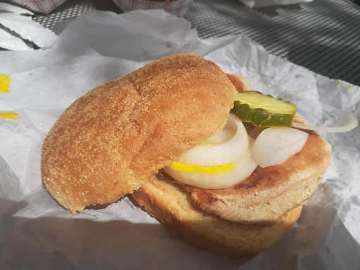 I have gone to this place twice, first time was a better visit. I find the food to be good, but seems overpriced. took my girlfriend with and she wasnt happy at all... her tiny chicken sandwich cost more than my bigger double cheeseburger. I forgot they didnt sell fries, and well almost $2 for such a small drink that was already half full of ice. I wouldve much rather gone to McDonalds and gotten a huge meal that came with fries and a real drink that had some size to it. Also the older gentleman who filled up our drinks pretty much slammed/thrown them onto the counter when giving them to us. never going here again unless its free.