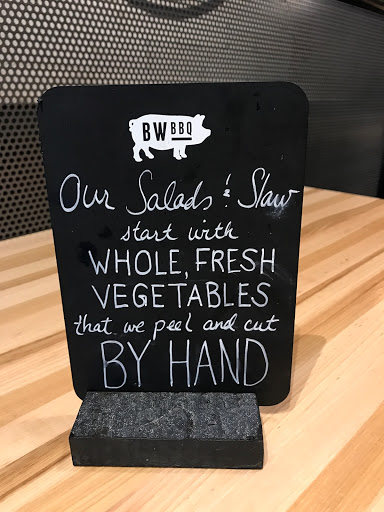 Very good BBQ, variety of options for main dishes, sauces and sides. Like Chipotle but for BBQ