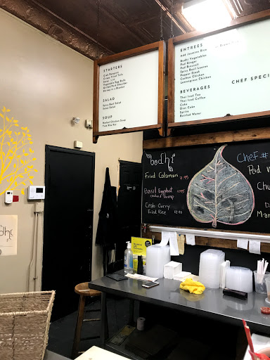 Bodhi takes Thai food to a whole new level. Their ingredients are very fresh and all dishes are made to order. Hence a bit of a wait time. I would recommend ordering ahead for pick up. This location has some stool seating and in the summer months there are some tables outside. If you live in the area and havent tried Bodhi, your sleeping a good spot!