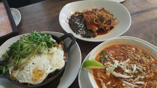 Ive been wanting to try this place for awhile so I suggested to two friends and we decided to meet for brunch one Sunday. When I got there, there was about a 45 minute wait. I was a little bummed by that, but decided to wait next door at The Wormhole. The hostess offered to come and get us from the Wormhole when we were next for a table. We did get a table, and it was definitely worth the wait! My food was amazing! I ordered an egg scramble with salsa, avocado & chicken. It was soo good. Seasoned well. Big potions. Everyone else like their food too. The only bad part was that my friend tried to order a mimosa and was told she couldnt get a drink until 12pm. I think it was 1130am...