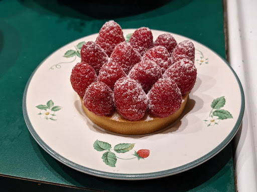 I let them know it was my first time at their café, and the hostess was gracious. She gave me her recommendations, but as Im allergic to walnuts, I had to try something else. I enjoyed their atmosphere and their latte. I took a couple of their raspberry tarts and strawberry thumbprints. They are small, semi sweet bites I wish I had eaten with my latte (I drank up the latte as soon as Id gotten it). The tarts are semi-sweet and I stress this because its exactly what I had asked for. At $2.00 a piece, it was worth it. I will definitely be going again (especially after seeing a croque monsieur on their lunch menu). Merci beaucoup! ^_^