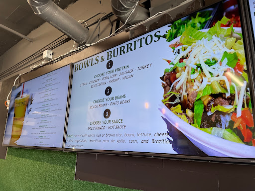 I found myself here meeting a friend for lunch. I cant seem to remember what used to be here when I used to live up this way. My memory is going in my old age. So the space is totally a fast food type space. I loved that they have a little Brazilian grocery spot! How cool! The menu is pretty self explanatory. I went for the chicken Brazilian bowl...how could I not. For $7...yes, I said $7...it was huge and delish and full of chicken and flavor. There was veggies, cheese, rice, beans, everything you could possibly want. It was really fantastic. The staff is super cute. I actually really liked them because they were personable. I will definitely come back here if I am in the area. :)